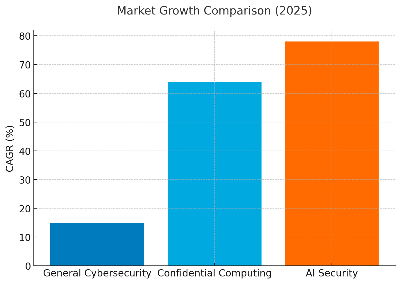 Market acceleration and strategic investment: The confidential computing market projects USD 9.31-14.84 billion in 2025, expanding at 64-65% CAGR through 2030-driven by AI integration, regulatory pressure, and escalating breach costs. This growth rate exceeds general cybersecurity spending increases (15% projected for 2025) by more than 4x, signaling that TEEs represent disproportionately high-priority capital allocation for security organizations.