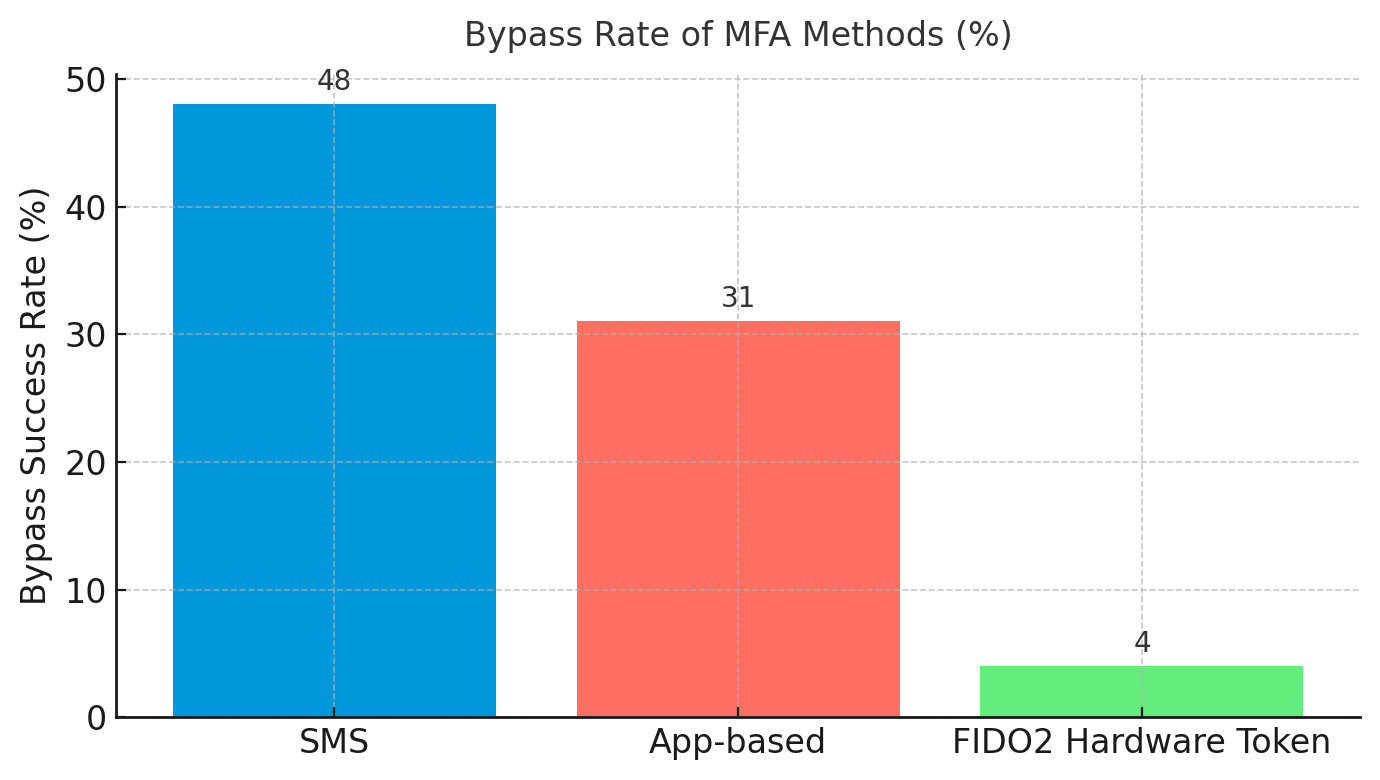 Organizations responded by deploying multi-factor authentication, but implementation quality undermines security benefits. Stolen credentials account for 25% of successful incidents despite widespread MFA adoption, revealing systematic failures in deployment. SMS-based MFA remains vulnerable to SIM swapping. App-based codes can be phished through social engineering. Only FIDO2 hardware tokens provide meaningful protection against credential theft and phishing attacks, yet adoption remains minimal due to cost and deployment complexity.