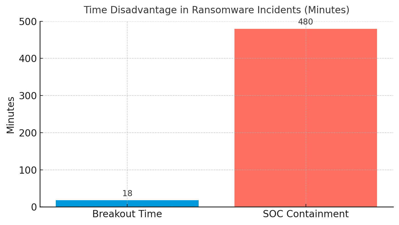 Ransomware is winning again, but not for the reasons security leaders expect. In 2025, attacks spiked to 24% of organizations, up from 18.6% in 2024, ending a three-year decline. The reversal is not about criminal innovation or defender complacency. It is about mathematics. Attackers have compressed the time between network breach and lateral movement from 48 minutes to 18 minutes. The average security operations center needs eight hours to contain an incident. Defenders now operate at a 26-to-1 time disadvantage, and the gap is widening.